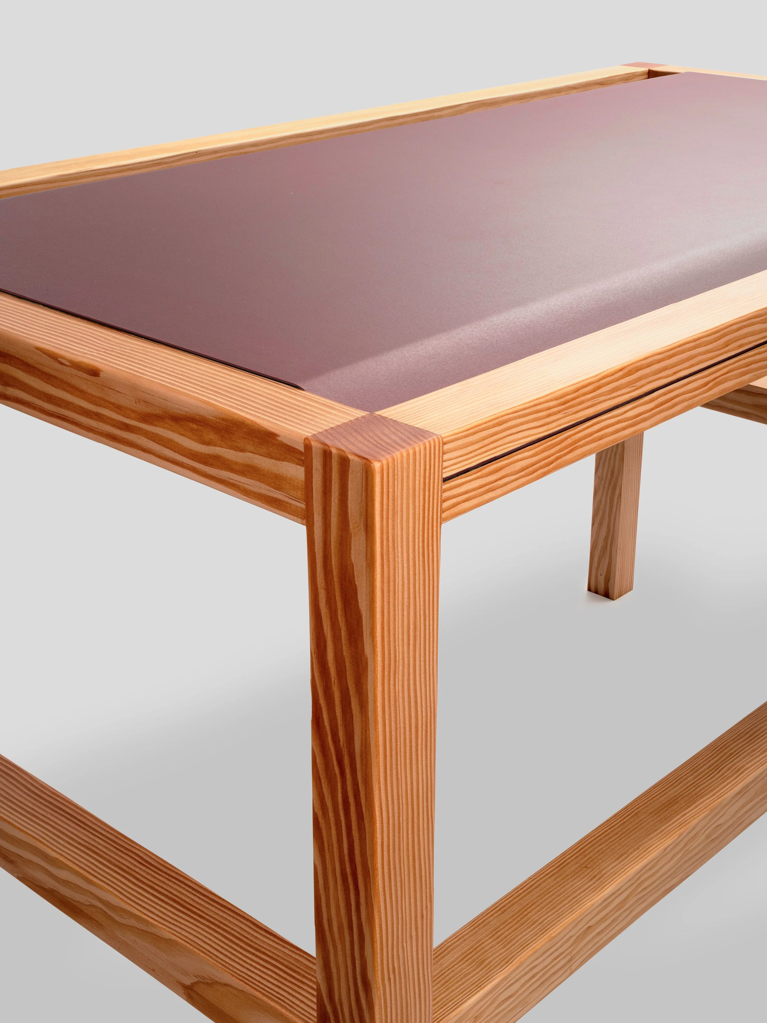 Valley Desk uses woven linoleum to form shallow end pockets that gently suggest where things might live—offering a slightly new way to see and use a familiar surface.